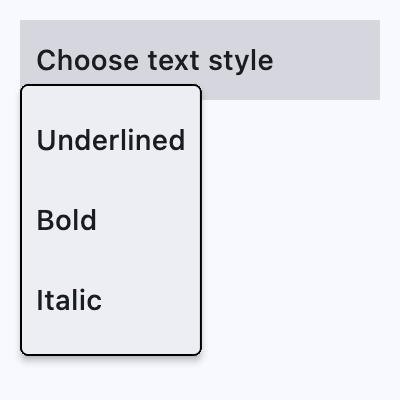 content=ft.Text("Choose text style"),