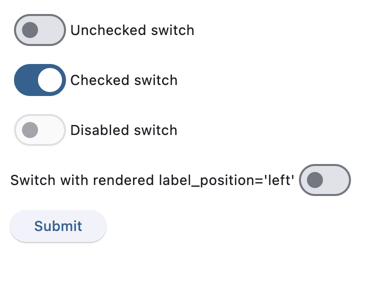 c1 := ft.Switch(label="Unchecked switch", value=False),